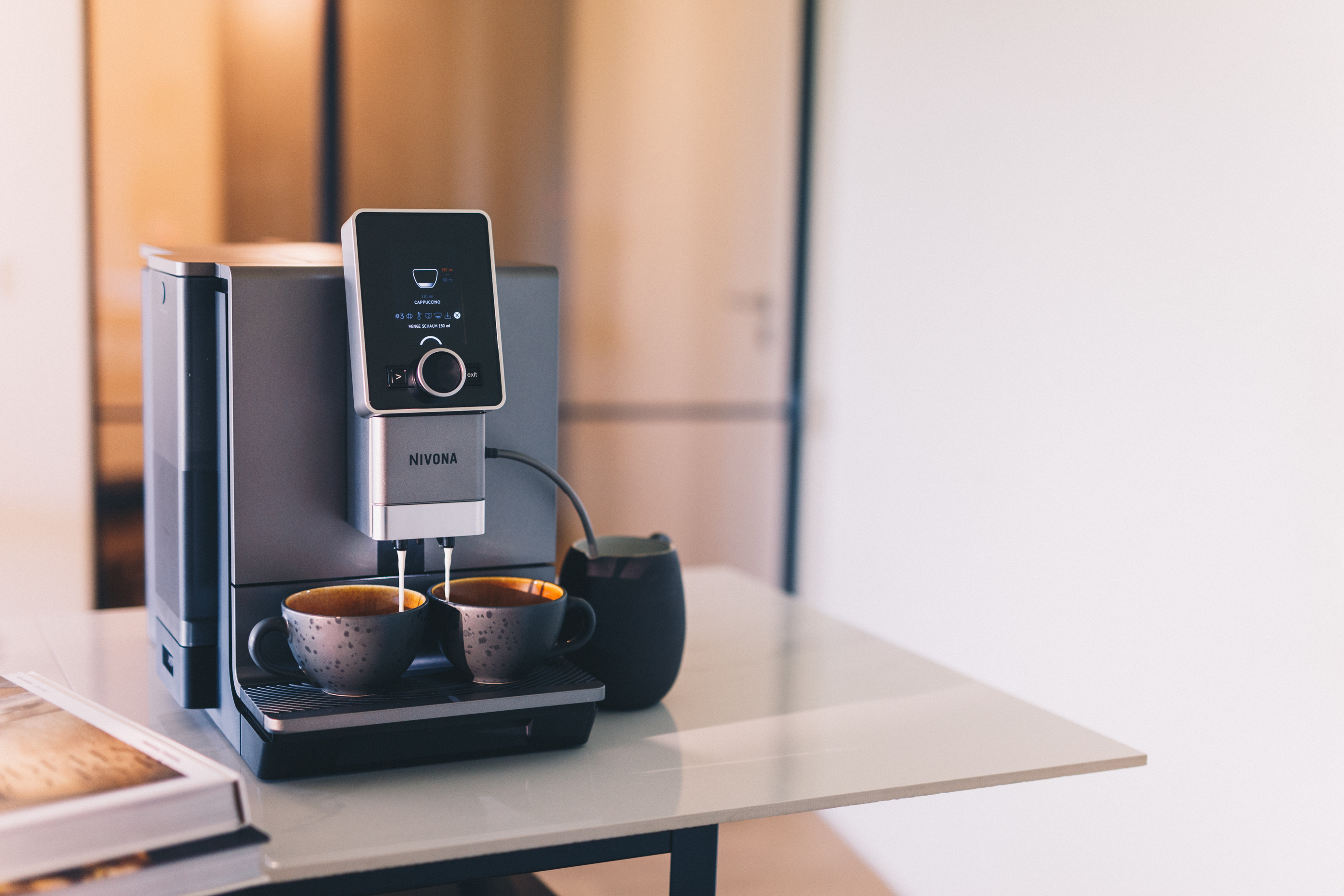 - Zwei Cappuccino oder Latte Macchiato auf Knopfdruck